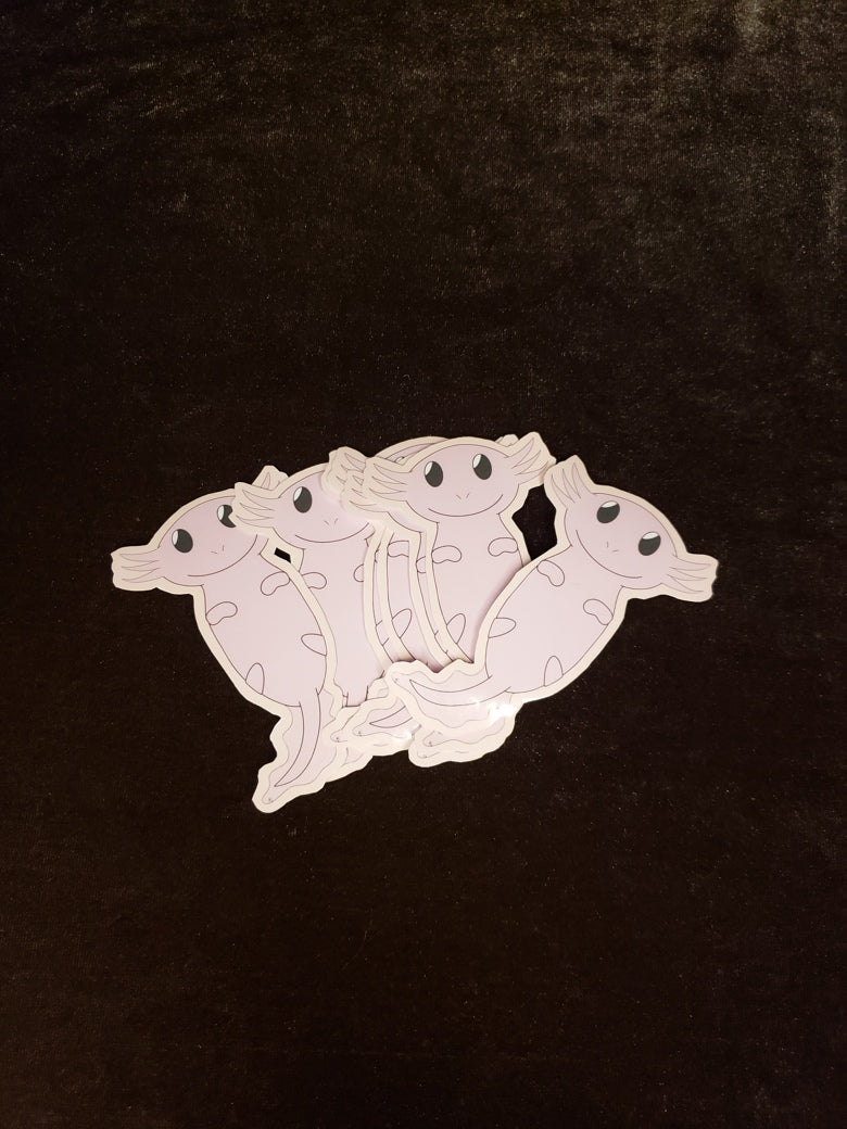 Stickers are approximately 3 inches tall, printed on scratch and tear resistant vinyl, and laminated. Not recommended for use on water bottles, but great on laptops or for your sticker collection! Each sticker is hand-cut, so there are slight differences in each one.