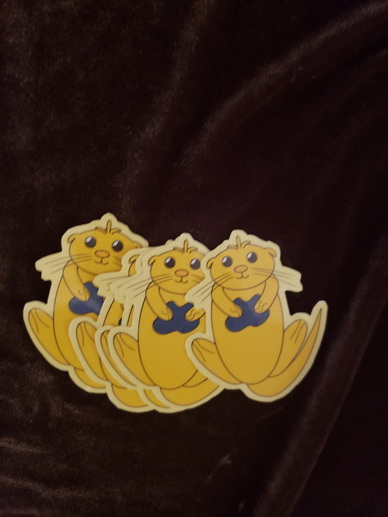Stickers are approximately 3 inches tall, printed on scratch and tear resistant vinyl, and laminated. Not recommended for use on water bottles, but great on laptops or for your sticker collection! Each sticker is hand-cut, so there are slight differences in each one.