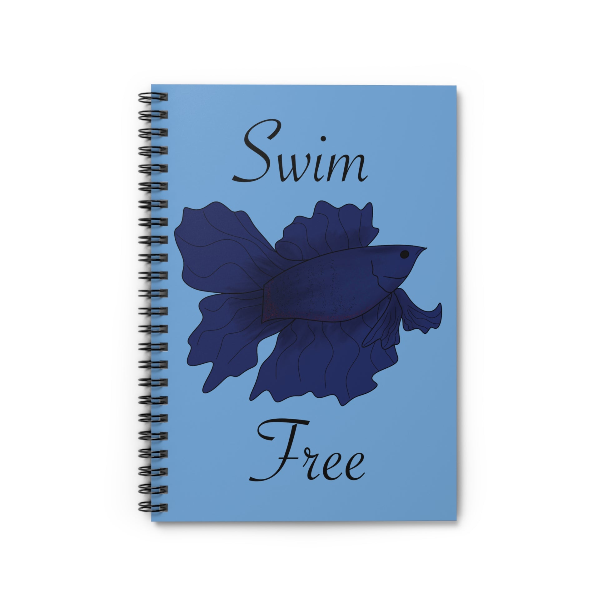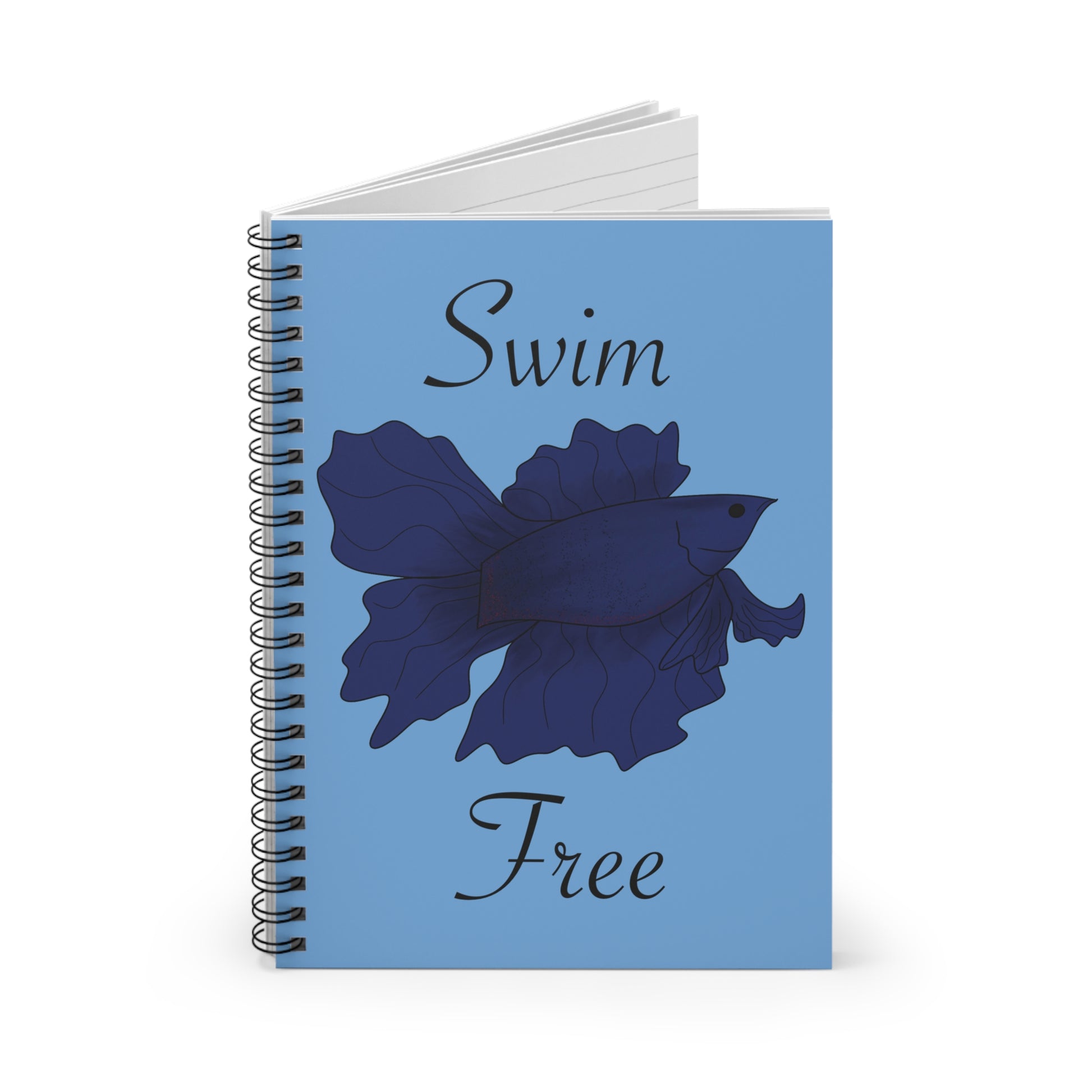 Celebrate creativity, calm, and forward motion with this beautifully designed spiral notebook featuring an elegant blue betta fish and the uplifting caption “Swim Free.” Betta fish are known for their grace and resilience; they symbolize independence, strength, and personal growth—making this notebook a meaningful companion for daily writing, sketching, or planning.