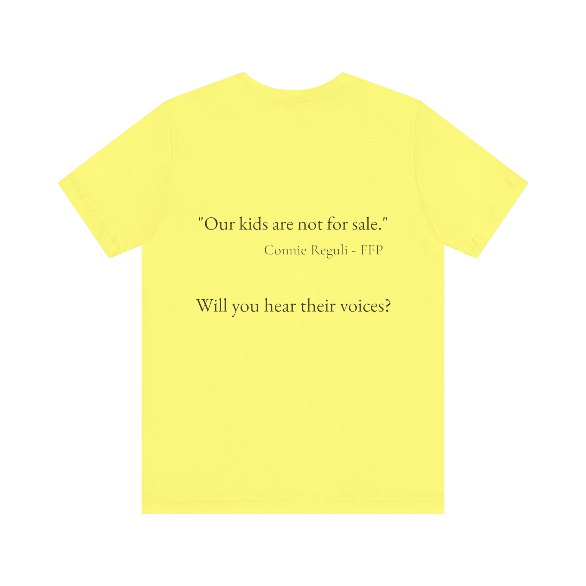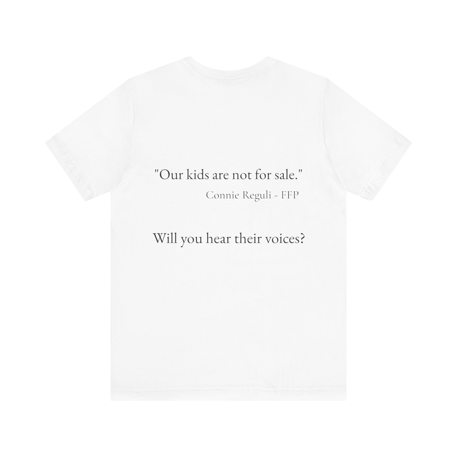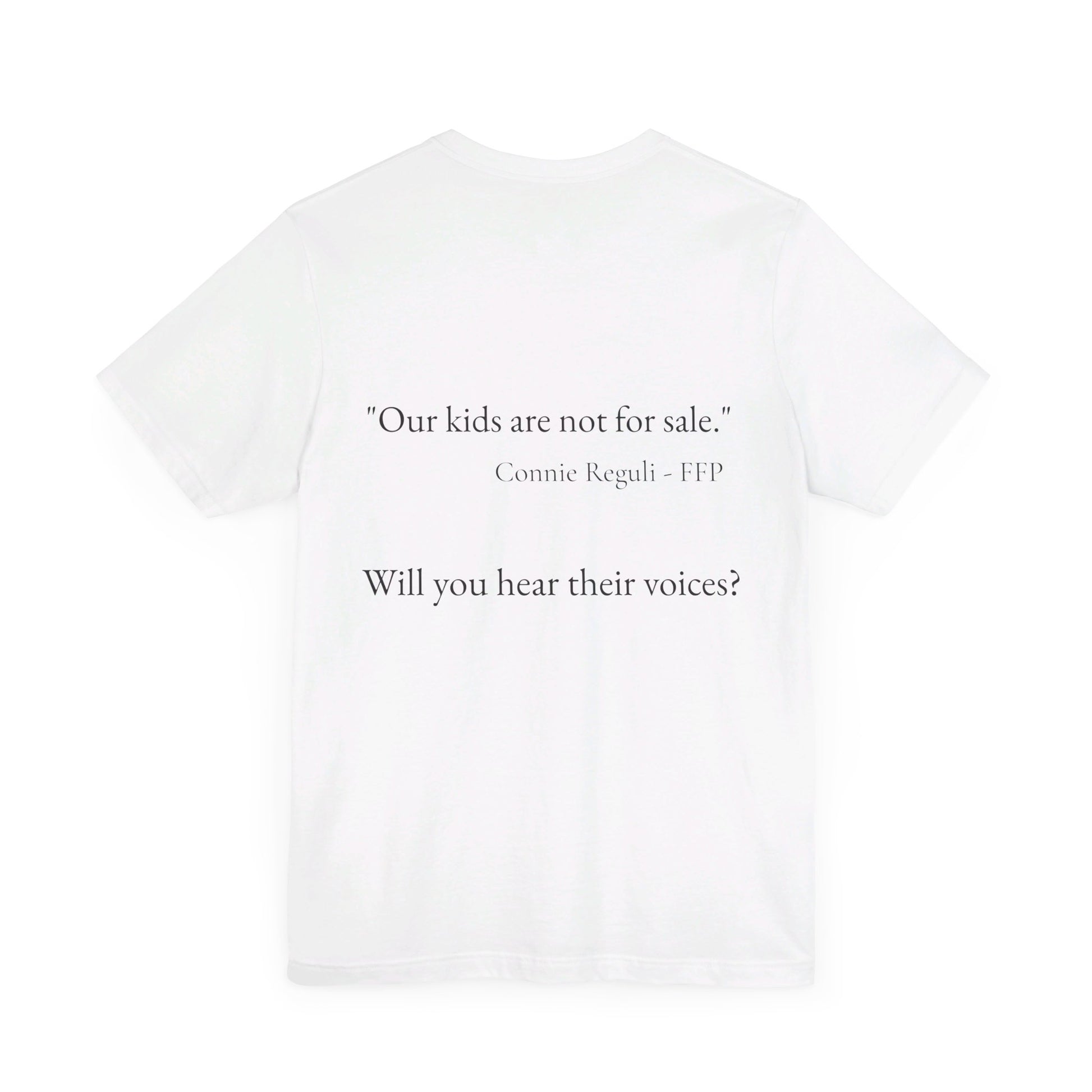 "Our kids are not for sale." Connie Reguli - FFP. Bring attention to the voices that must never be silenced.