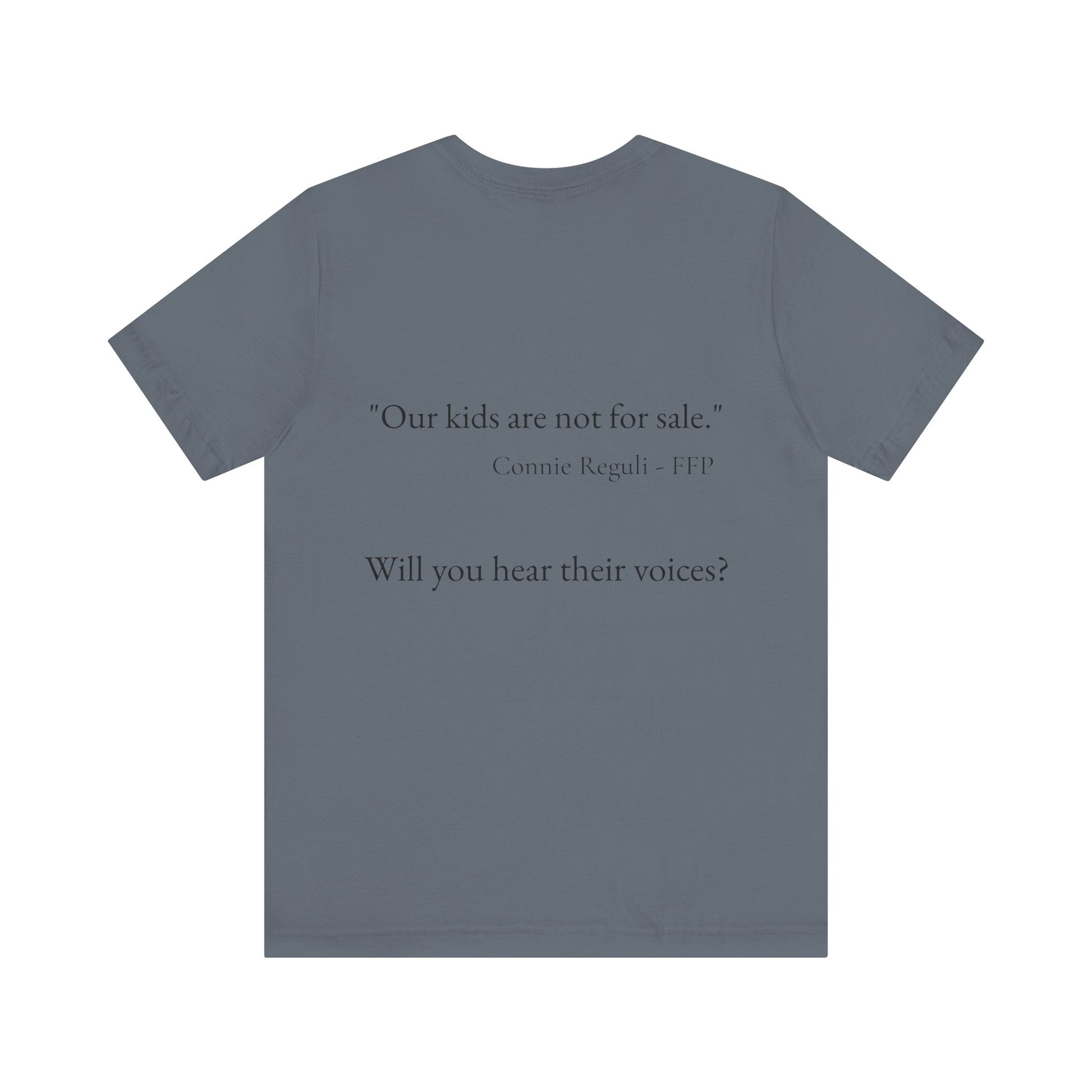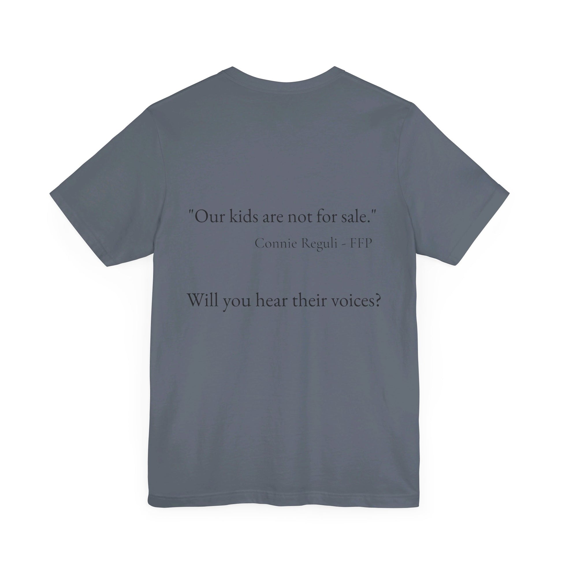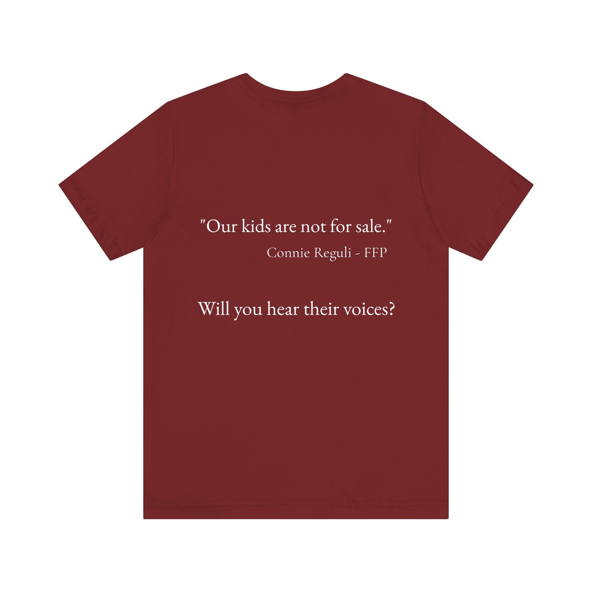 "Our kids are not for sale." Connie Reguli - FFP. Bring attention to the voices that must never be silenced.